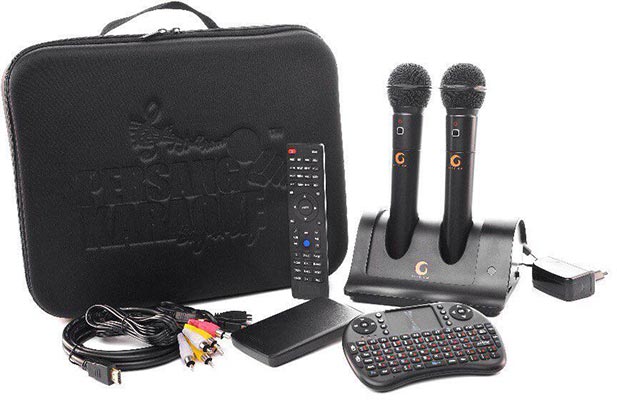 В комплекте два радио микрофона и пульт дистанционного управления. Вход под дополнительный микрофон, эффект реверберации для микрофонов, изменение темпа, тональности.